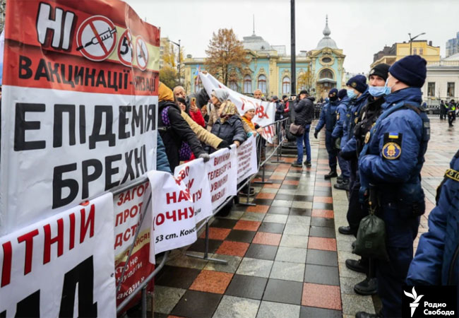 3 листопада 2021 року у столиці України під Верховною Радою відбулася велика та довгоочікувана акція проти ковідних обмежень, порушень прав людей та примусової вакцинації. На мирне зібрання у Києві зібралися тисячі людей з різних міст України. Організатором протесту вкотре виступив рух "Права людини" (засновник руху - Остап Стахів) за підтримки рухів "Захист здоров'я нації", "Вакцинація - вільний вибір", "Стоп фейк-пандемія", "Багнет нації" та багаточисельних активістів, правозахисників і блогерів. Люди вийшли відстоювати право на працю без примусу до медичних процедур, очну освіту дітей, життя без карантинних обмежень та за Конституцію як основний закон.
